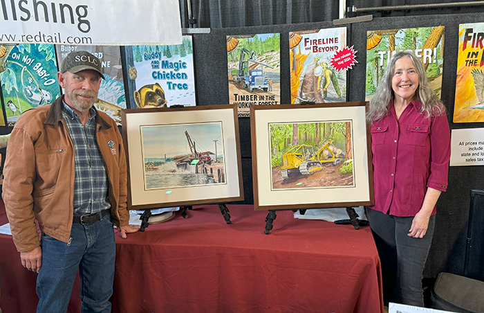 By now, most folks are used to the competition Tim (The Forester Artist) and I have with our original art donation to the Sierra-Cascade Environmental and Resource Fund annual education auction hosted by the Sierra Cascade Logging Conference. Up until last year, Tim kept coming out on top, but then I smoked him when my piece, Off-Highway Hauler, brought in double what his piece, The Fellers, did for environmental education in 2017. I had bragging rights for the year.