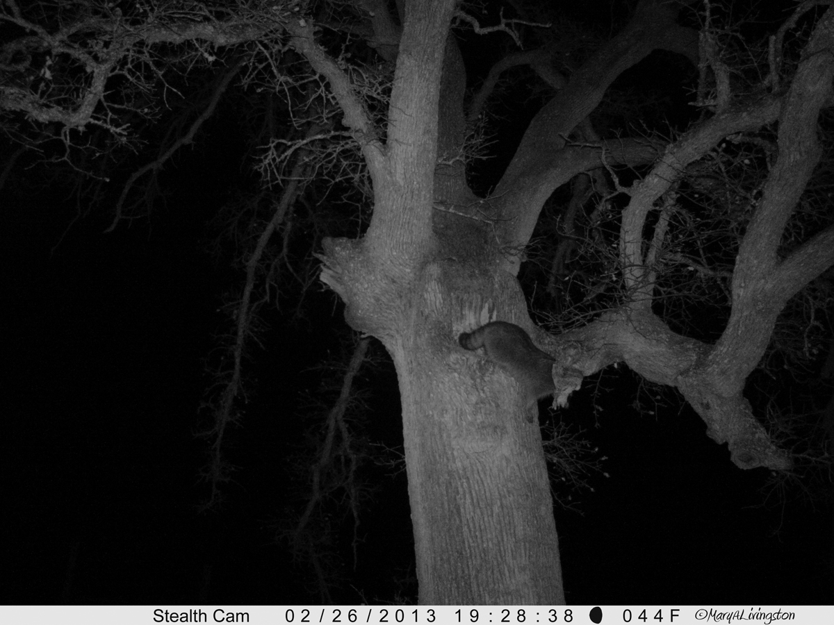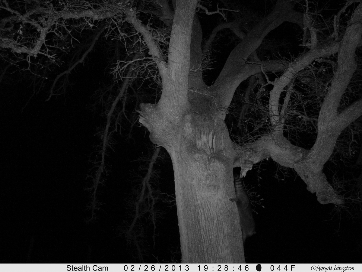 Early in the night, just after dark, a raccoon visited the turkey vulture nest tree. It climbed up the backside and over the top. Paused a moment at the cavity opening, then was on its way. I worried when I first saw the intruder, a nest raider for sure. I wondered if the vulture eggs would be safe down inside the tree cavity? Will this night bandit be back?