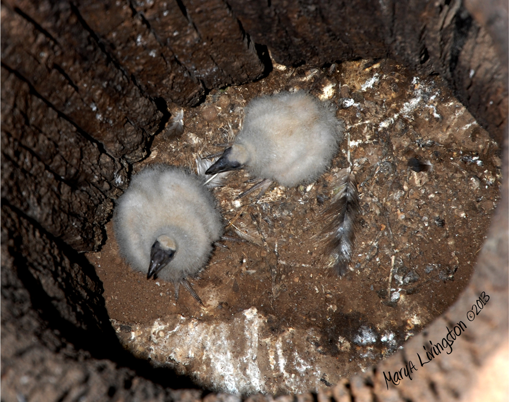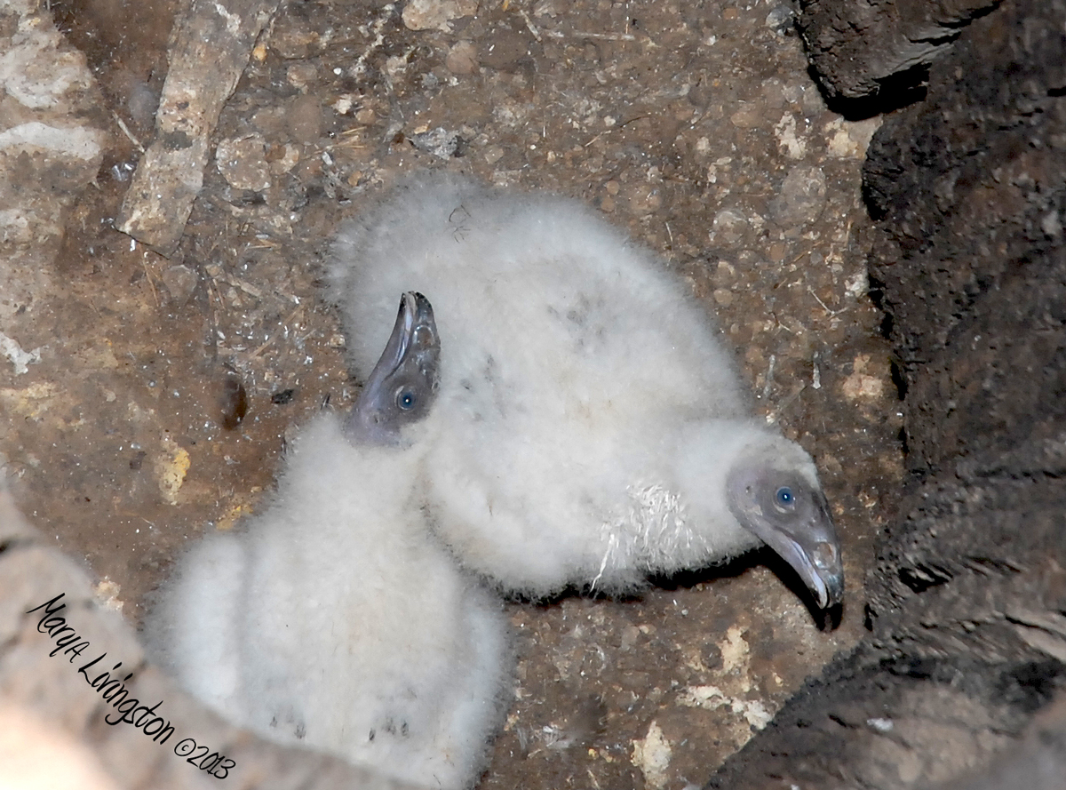 The turkey vulture chicks are about 3 weeks old. I was amazed at the lack of odor from the nest cavity opening. Previously, when a parent was in the nest, the smell was malodorous. This time, however, with only the chicks, I was shocked at the lack of stench when capturing this image. Curious because it looks like it should smell bad.