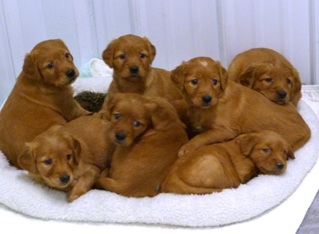 Sailor and his littermates. Image courtesy of Jill Flament, Saturday Night Golden Retrievers.