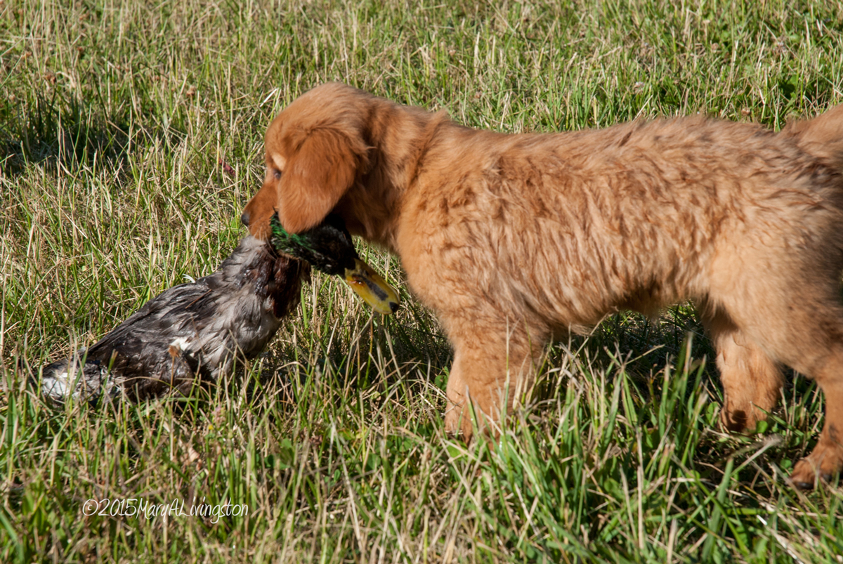 Bliss, 9-weeks-old, taking her place in her family of hunting retrievers.