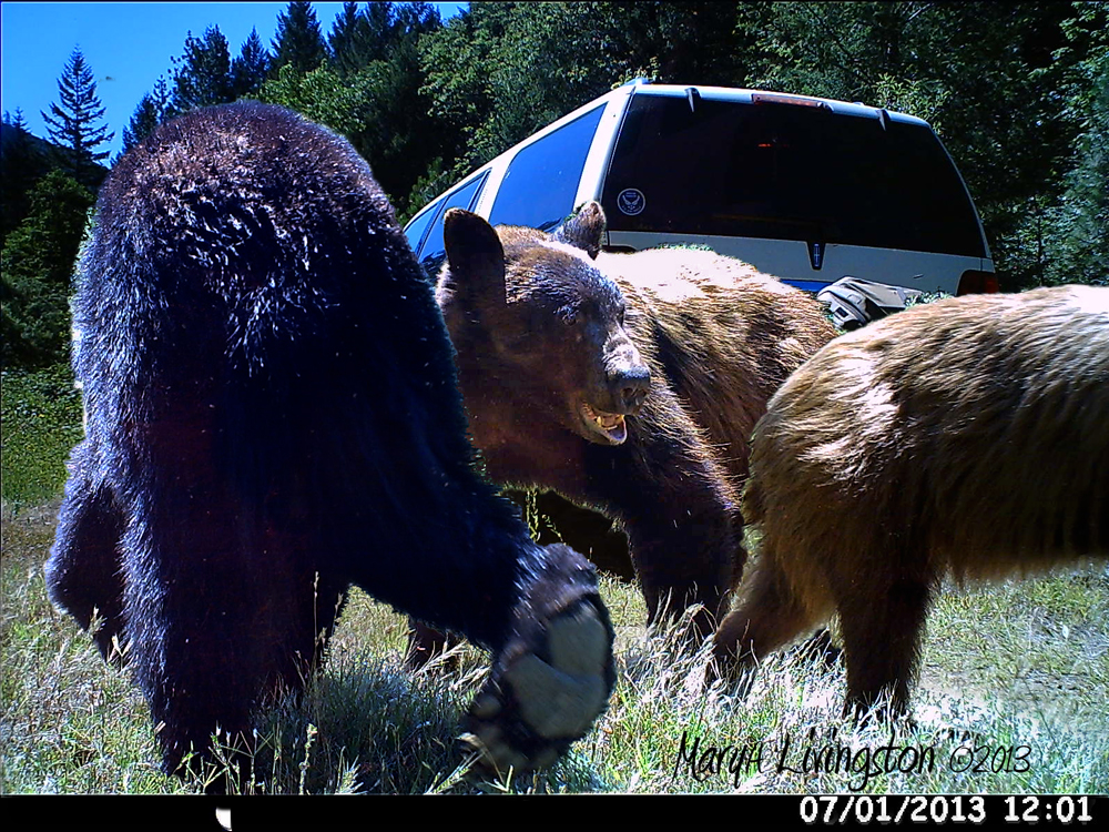 The area where the trail cam is located has blackberries and some old apple trees. Both favorites of the local black bears. They come by to check the ripening status of the fruit.